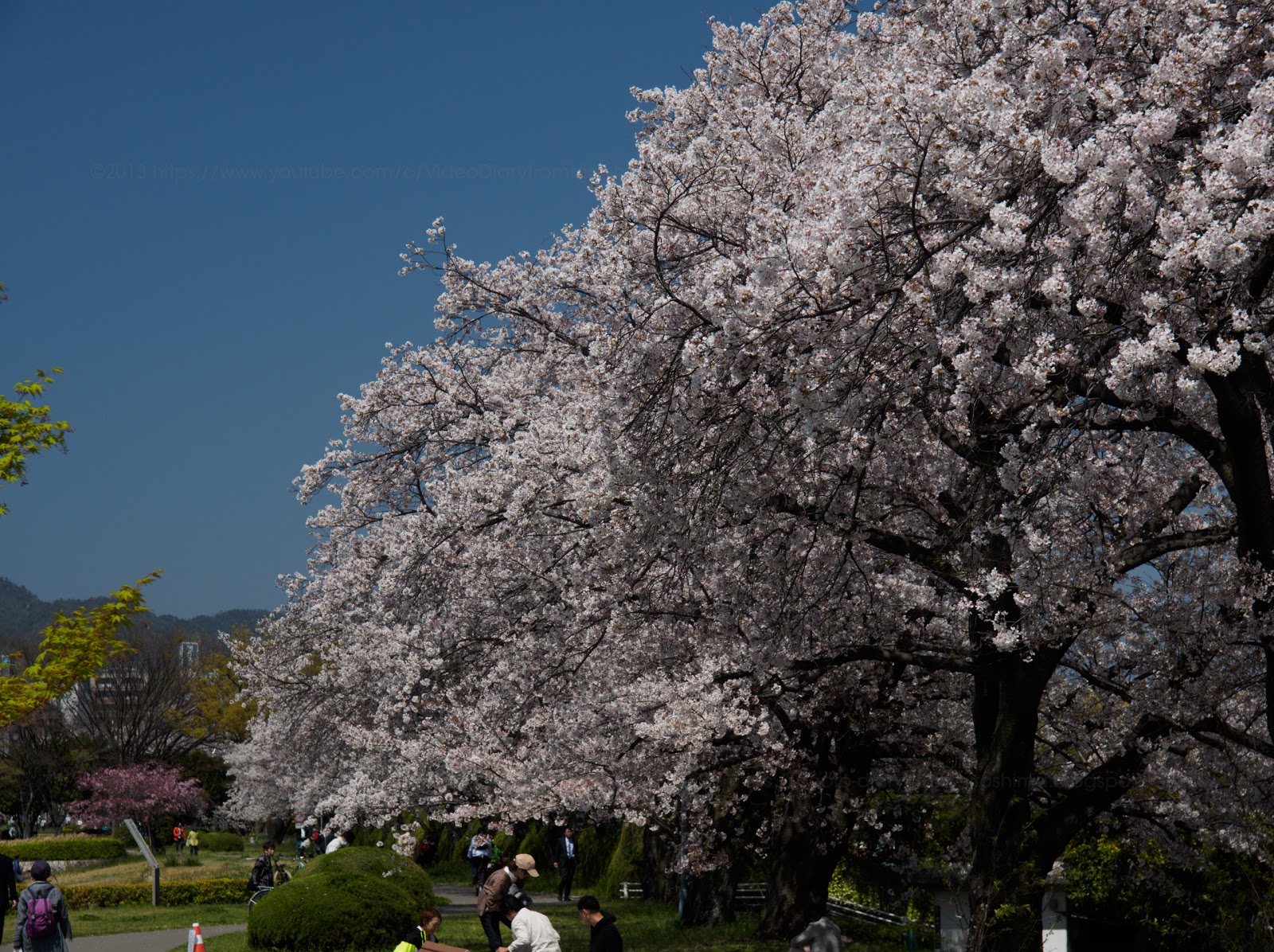 枝が低い所まで張り出している桜の下に移動して撮影。 奥ピント。